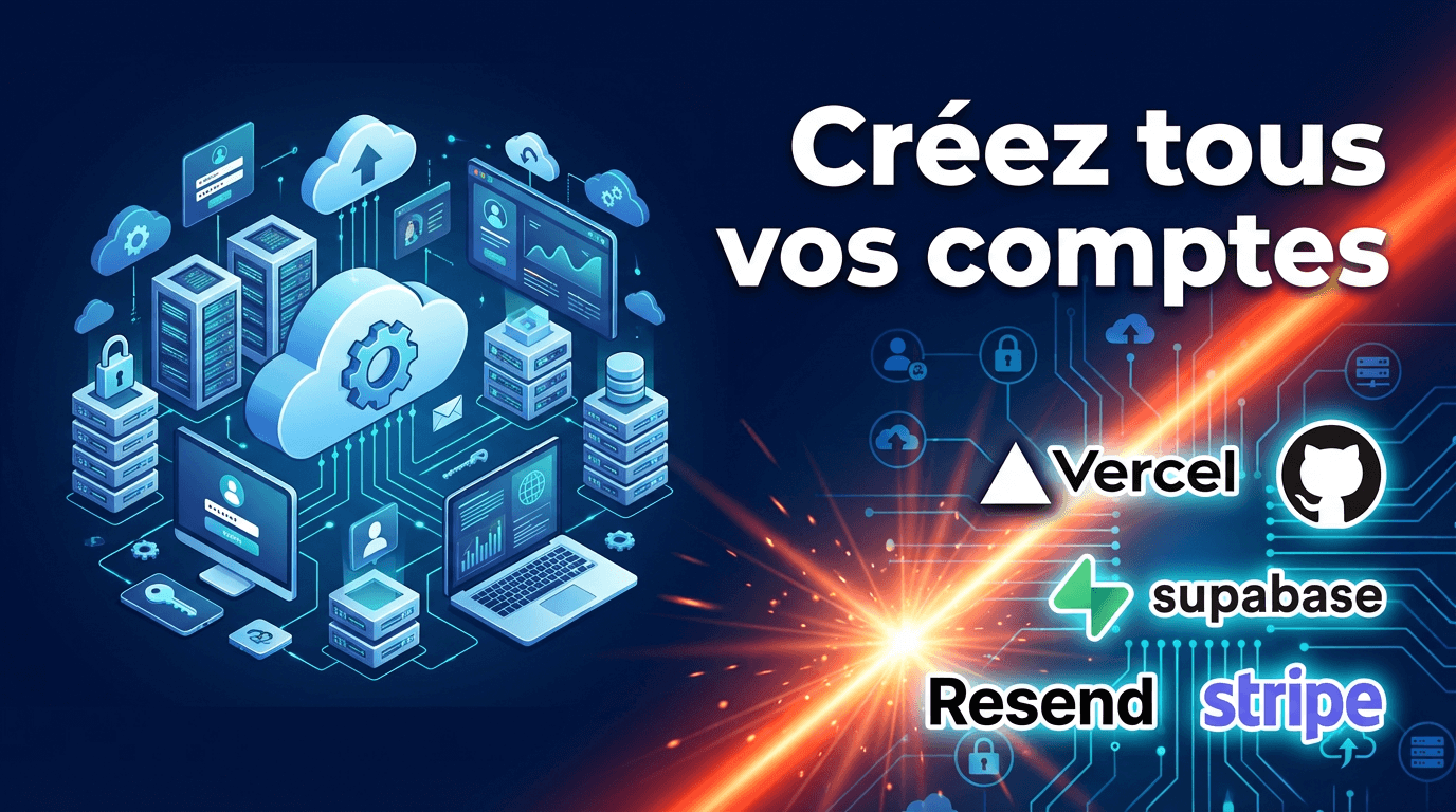 ÉTAPE 9🔒Supabase, Stripe, Vercel, Resend, GitHub. Tout configurer en 1 heure pour être prêt à développer dès l'étape suivante.